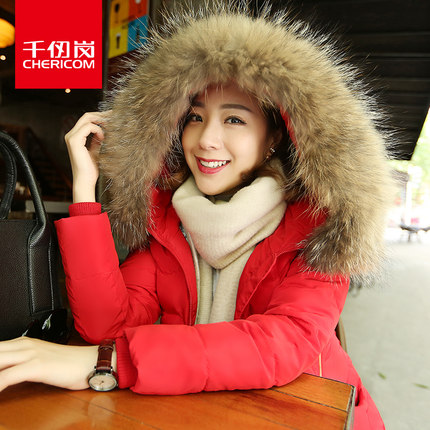 千仞岗冬装新款羽绒服修身加厚大毛领外套,千仞岗2017冬装,貉子大毛领,长款加厚防风保暖,防风袖修身版型,利落的剪裁。