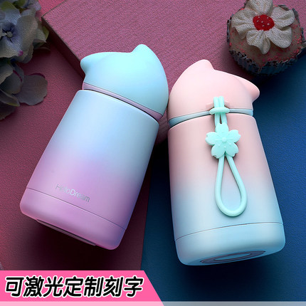 艾可思小清新渐变色保温杯350ml,304不锈钢内胆,安全健康,360°密封防漏,长时间保温保冷,弹力樱花手提,手感细腻,便捷携带,女神必备的超萌保温杯!