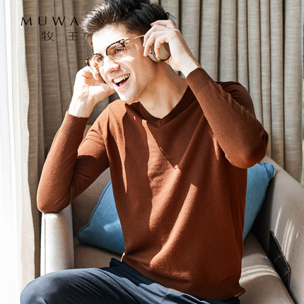 牧王-男士纯色V领纯羊毛衫,100%纯羊毛,柔软细腻,弹力修身,舒适保暖,气质V领,简约基本款,轻薄打底,多色任选,高品质高颜值,卷后79元包邮【送运费险】