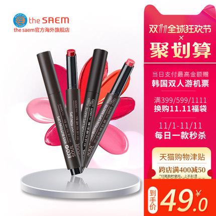 【TheSaem/得鲜香吻按压哑光口红唇膏 劵后39元包邮】