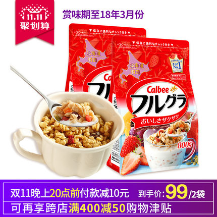 【日本进口 卡乐比 水果谷物麦片 800克*2袋 双11价 券后94元包邮】