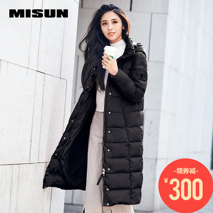 【米尚 女士中长款修身羽绒服 多色¥499包邮(¥799-300)】