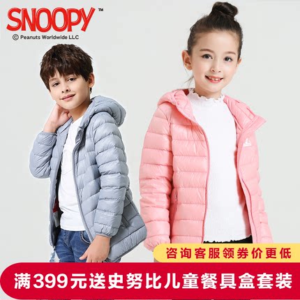 【史努比 男女童连帽羽绒服90~160cm 劵后139元包邮】