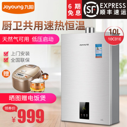 【九阳 JSQ20-10C01E燃气热水器10L 送电饭煲¥899包邮】