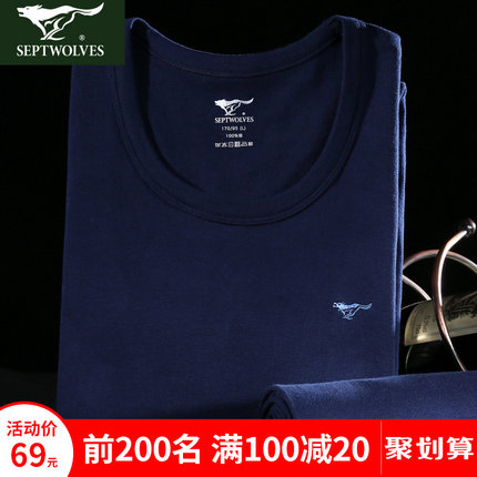 这款 七匹狼 纯棉薄款 秋衣套装,采用100%纯棉材质,上身亲肤舒适,保暖的同时,弹性也不错,目前天猫 商城售价¥69,还可以叠加 ¥10优惠券,券后实付 ¥59包邮到手
