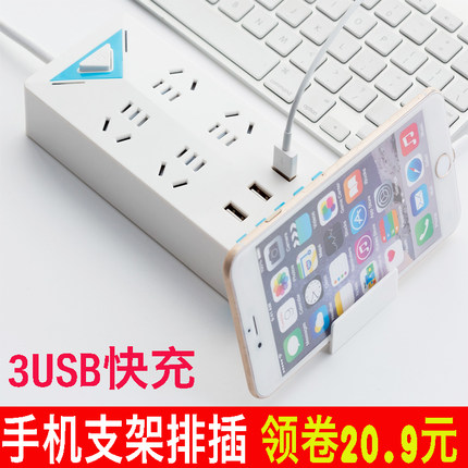 戴利普 3插孔+2USB创意插线板,智能分流技术,充电0损伤,包含2个USB快充端口适合多数设备,牢固耐用耐插拔,家庭必备。售价23元,领取5元券,实付18元包邮。