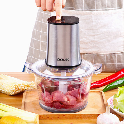 多功能电动绞肉机,剁馅做辅食都能用,目前天猫志高专卖店银色款售价¥79.8,可使用¥20优惠券,实付¥59.8包邮,钢轴4叶刀片+纯铜电机,2L大容量,快慢双档,秒速碎食。