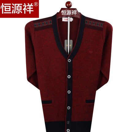 【恒源祥 针织开衫 男羊毛混纺加厚V领毛衣 卷后139元包邮】