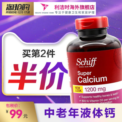 美国 Schiff 液体钙软胶囊 120粒,目前天猫国际 Schiff旭福官方海外旗舰店售价¥99,叠加 ¥30优惠券,券后实付¥69包邮到手,还可第2件半价。