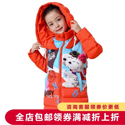2017年秋冬新款,目前天猫商城PEANUTS旗舰店售价¥399,可使用店铺¥100优惠券,实付¥239包邮,110~160码全,4色可选,80%白鸭绒,可爱印花,时尚轻薄,秋冬必备。