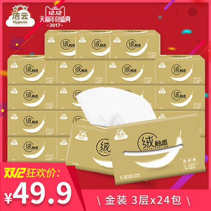 【洁云 绒触感 软抽面巾纸 3层130抽*24包¥39.9元】
