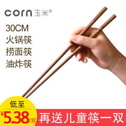 玉米 家用鸡翅木筷子 5双,又名鸡翅木火锅筷,精选材质,圆头圆嘴打磨,无漆无蜡,木质不易变形,加长版,报价26.9元,可用10元券,实付16.9元