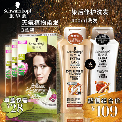 【施华蔻 无氨植物 怡然染发霜*3盒+多效19 or羊绒脂洗发水400ml ¥89包邮】