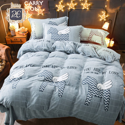 四件套双人1.8m床上用品珊瑚绒加厚,朴美法兰绒四件套双人1.8m,床上用品珊瑚绒加厚单人床单。双面绒毛,保暖不掉毛。