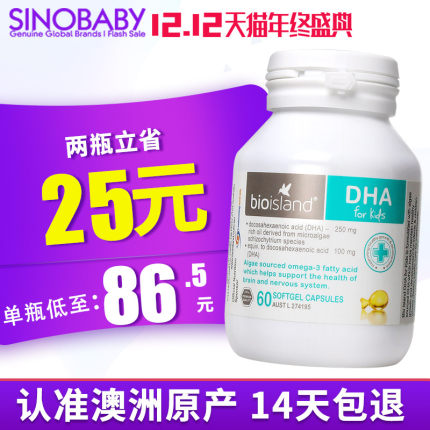 【生物岛 婴幼儿DHA海藻油营养胶囊 60粒 ¥84包邮包税 】