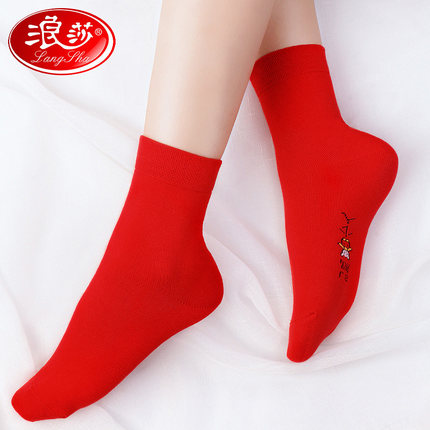 【浪莎 本命年红袜子 男/女纯棉秋冬款 2双¥16.9包邮】