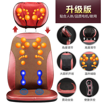 该款皇威多功能按摩靠垫H-713B,额定功率80W的铜芯电机,PU皮革和透气网布,16个按摩头推拿揉捏,可加热,正常颈部角度调节和升降调节,多重按摩手法,能缓解身体亚健康和身体酸痛部位。