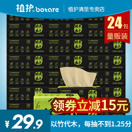 【 植护 本色纸抽纸3层100抽 24包 券后29.9元包邮】