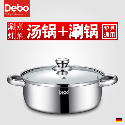 【德国Debo通用灶不锈钢汤锅火锅26cm 卷后49元包邮】