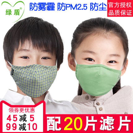 【绿盾 防雾霾儿童口罩 4枚原装滤芯+16枚活性炭滤芯 多色¥19包邮】