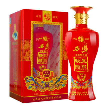 西凤浓香型白酒52度500ml,中国四大名酒之一,传统工艺酿造,酒质透明无悬浮物,酒香浓郁,口感醇香,回味悠长,喜庆婚宴、送领导、送亲友、送礼不掉面!