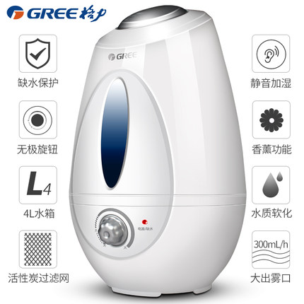 【格力(GREE) 家用静音加湿器4L 满减+劵后139元包邮】