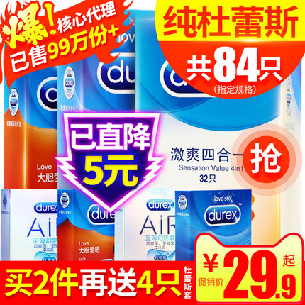 为了啪啪啪,商家血拼了!杜蕾斯避孕套,易佩戴,轻薄贴肤,水溶润滑,多口味22只组合装,私密包装,极速发货!
