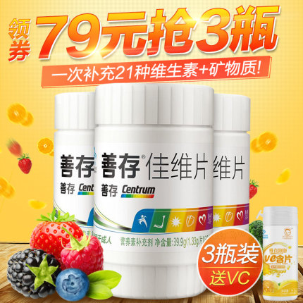 善存佳维片复合维生素30粒*3瓶,均衡膳食营养,一次补充21种营养素,告别营养流失,每日补充多一点,每天一粒,补充人体需要的多种维生素和矿物质,简单便捷,给家人一份健康呵护,健康全家享~