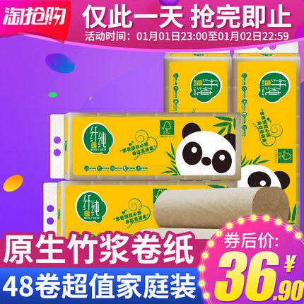 【维尔美 竹浆本色卷纸4层48卷 劵后36.9元包邮(折合0.7元/卷)】