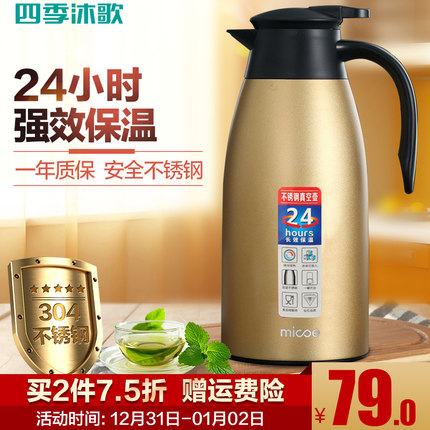 【四季沐歌(Micoe)304不锈钢保温壶2L 券后44元包邮】