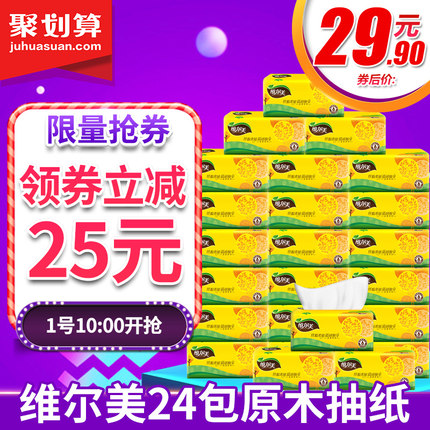 【维尔美】原木软加厚3层24包,进口原生木浆,湿水承受20个硬币不破,去污吸水强到爆,安全健康,不含漂染,母婴适用,一流品“纸”!好纸直接囤,速度抢!