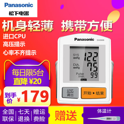 【松下 EW3006 家用手腕式全自动电子血压计 赠体温计¥154包邮】