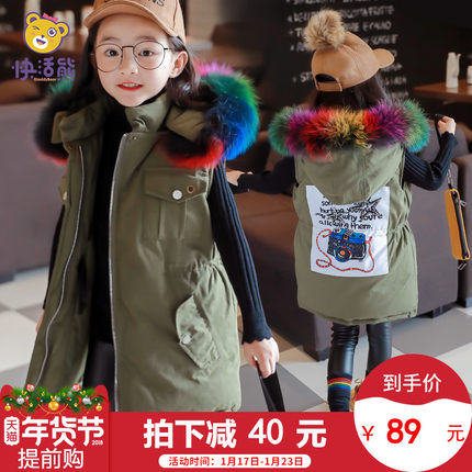 冬季韩版儿童中长款棉马甲,浓密彩虹毛领,时尚贴布,保暖性好,轻松应对凛冽寒冬,童年不同样,萌宝穿上超有范,超亮眼!