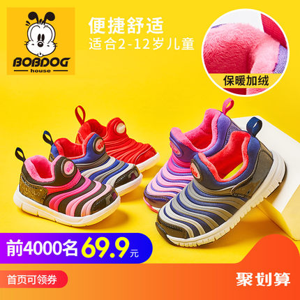 【巴布豆 冬款加绒毛毛虫2-12岁童鞋 劵后59.9元包邮(多色多码可选)】