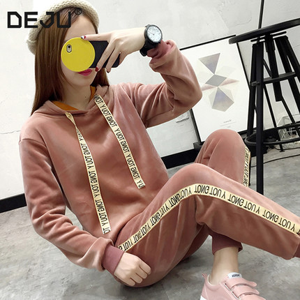 金丝绒套装,休闲时尚,修身显示,材质柔软亲肤,不起球,不掉色,女士必备运动休闲套装!!
