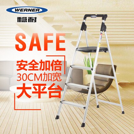 【美国Werner稳耐 家用折叠四步铝合金人字梯 139元包邮(219-80劵)】