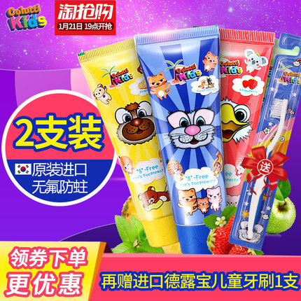 德露宝 无氟儿童牙膏 80g*2支 赠儿童牙刷 20元