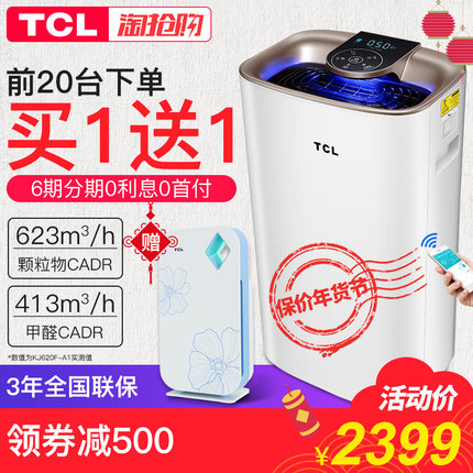 【TCL 家用负离子除甲醛空气净化器 劵后1999包邮】