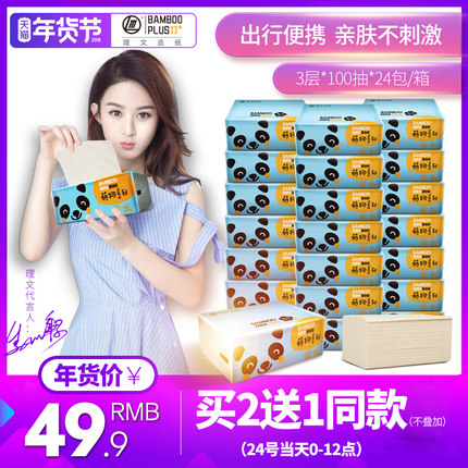 【理文 原生竹浆本色纸抽纸 3层100抽*24包 券后39.9元包邮】