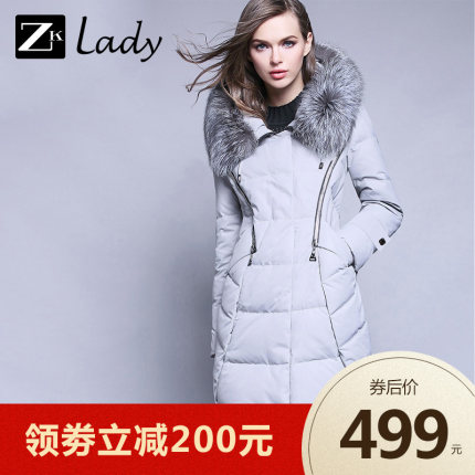 【ZKLADY 银狐大毛领修身显瘦羽绒服 劵后 499元包邮】