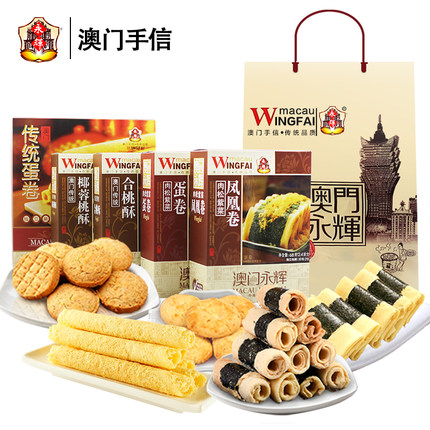 【澳门永辉特产 手信零食大礼包 鸡蛋卷杏仁饼5口味5盒装 券后49元包邮】