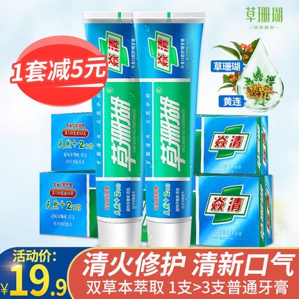 【草珊瑚 消肿祛口臭 90g*2支牙膏 券后9.9元包邮(24.9-5-10)】