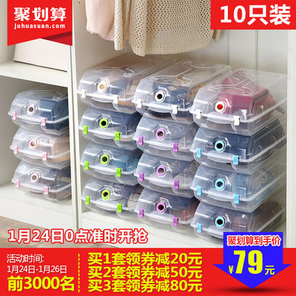 纳美嘉泛彩专卖店99元,可用20元券,实付79元包邮,合7.9元/个。超大号的鞋盒,可放下19cm的高跟鞋,45码的男运动鞋也不在话下。带有卡槽,可以组合使用。