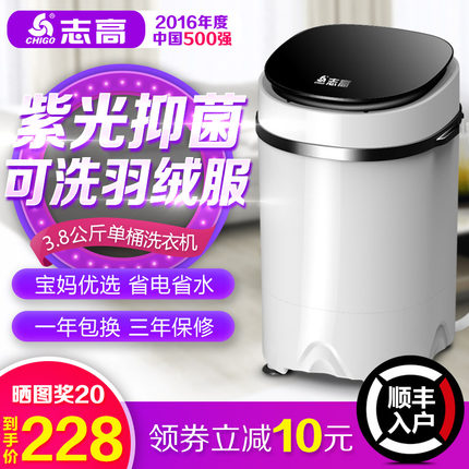 【志高(CHIGO) XPB38-40 3.8KG 单筒半自动迷你洗衣机 248元】