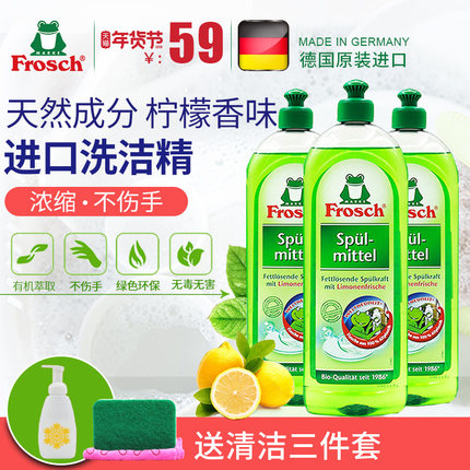【菲洛施 Frosch 浓缩冷水洗洁精 750ml*3瓶 可用1年 54元】