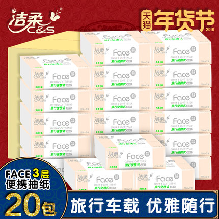 【洁柔 Face纸巾无香3层可湿水便携抽纸28抽/包 20包 劵后29.9元包邮】