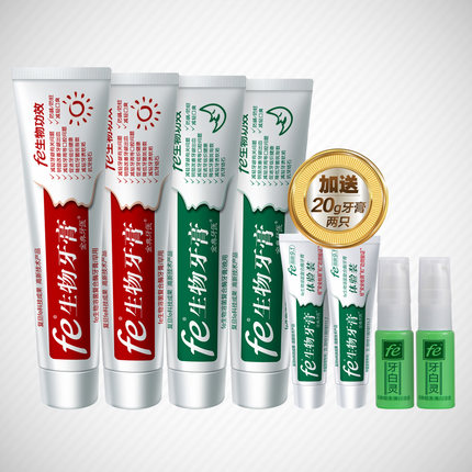 【fe金典 上市纪念版生物牙膏4只套装 送20g试用装2支+8ml牙白灵*2支 30元】