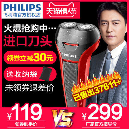 飞利浦超值电动剃须刀!大品牌高颜值!高品质的追求!贴面舒适不夹须,全身水洗,强劲刀头,男神必备!