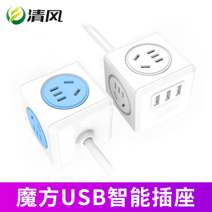 清风 QF-M12C 魔方USB多功能插排,天猫商城 清风鼎豪专卖店 售价¥29.9起,叠加¥10优惠券,券后实付¥19.9包邮到手,4个国标小五孔,带开关,更方便,另有带3个USB孔的款可选,贵¥20。不管放桌上还是插墙上都是很方便的。