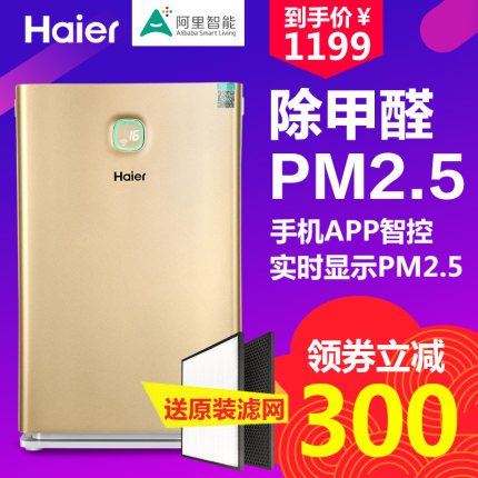 海尔空气净化器,高效除霾甲醛PM2.5二手烟,母婴、老人、儿童人群尤其需要。释放500W+负离子,增加含氧量,清新净化呼吸,享受健康居家办公!阿里智能新升级,不管身处何地,一键智控。